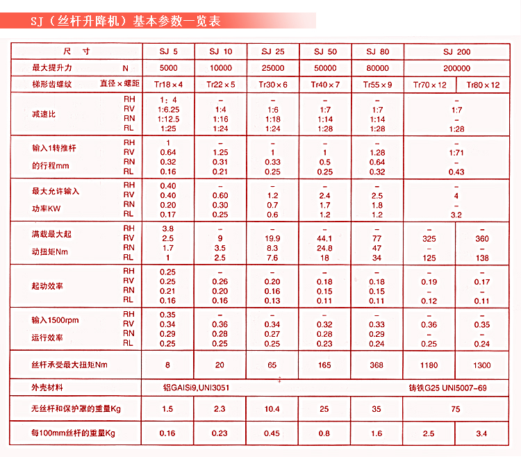 SJ型為基本型升降機,即輸入方式為輸入軸型